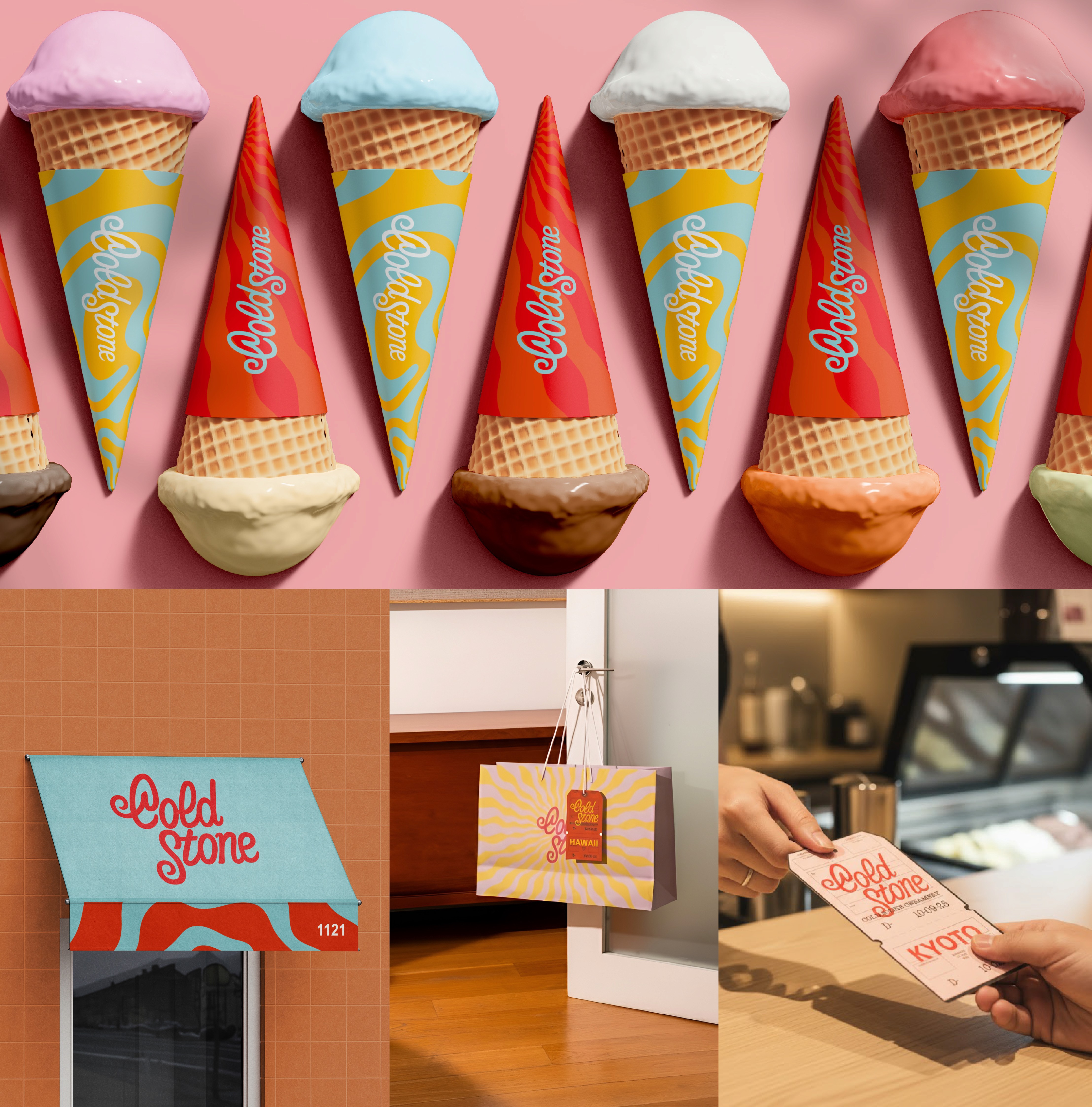 Cold Stone Creamery's mission is to give every guest a "10-minute vacation" through their ice cream experience. Building on that, the rebrand transforms the brand into a passport to joy where each visit feels like a short getaway, full of discovery, delight, and flavor.
